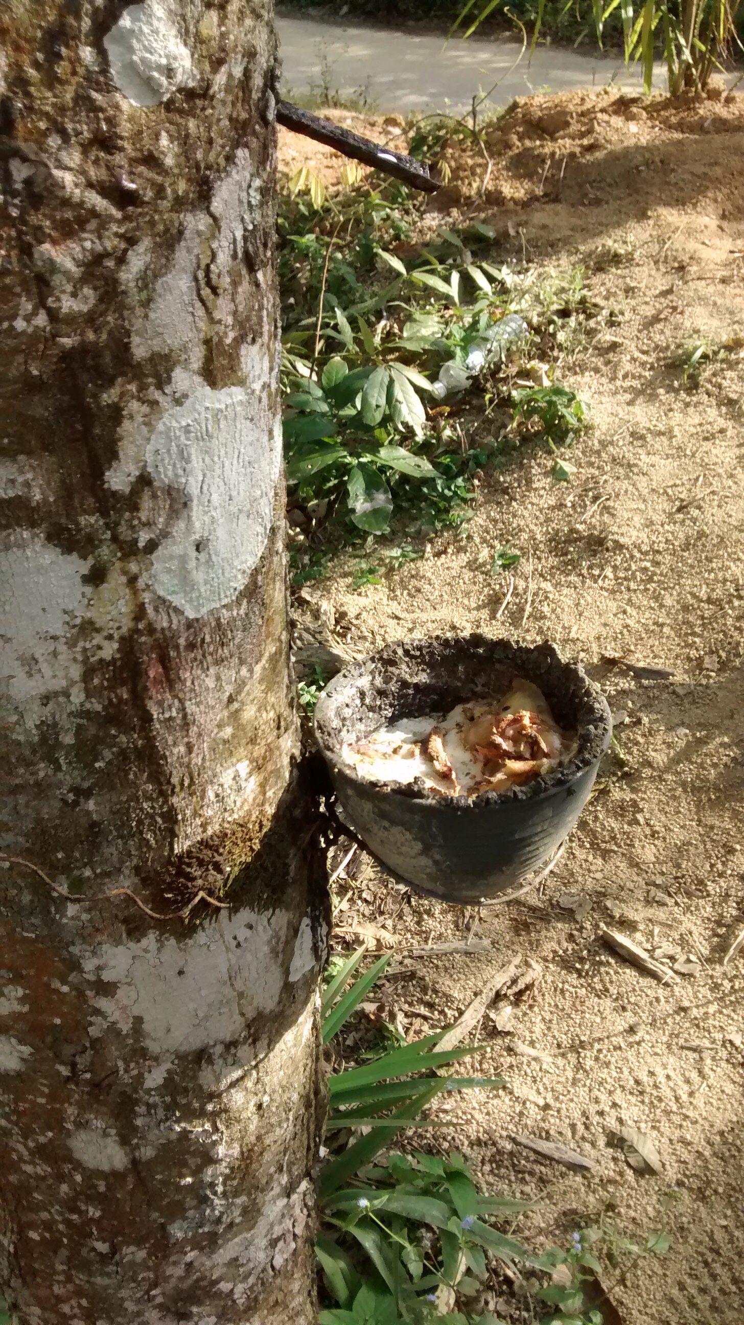 Rubber dries quickly in the tropical heat, so the family that farm here have to do their tapping before the sun rises. In fact they start at 3am, each morning.
