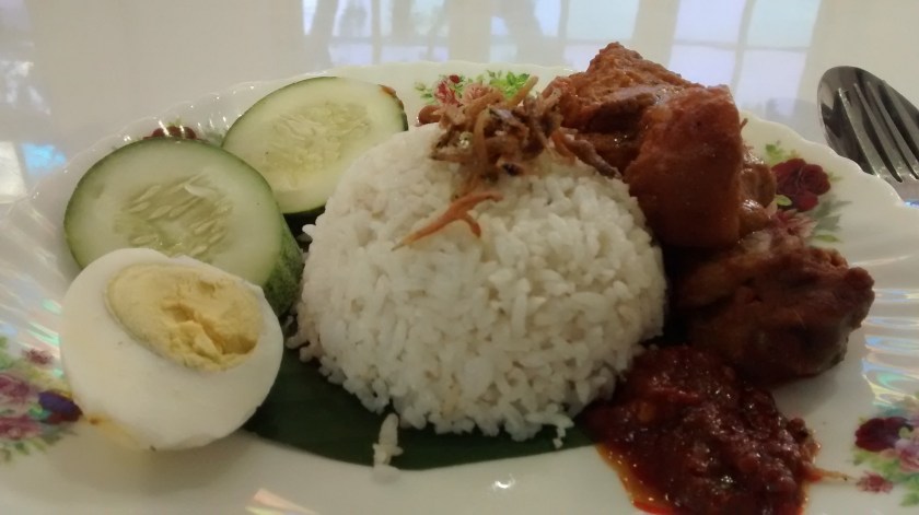 Mmm, nasi lemak, the national dish, in the museum cafe. Rice in coconut milk, anchovies, chicken side, some seafood in there as well I believe. I’m going to have to tuck into this beauty now, and I’ll continue the tour afterwards. Back soon!