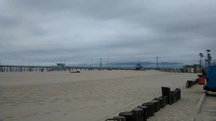 The flat, dreamy expanse of sand that typifies the two beaches. But this particular spot of Santa Monica beach has a sadder side…