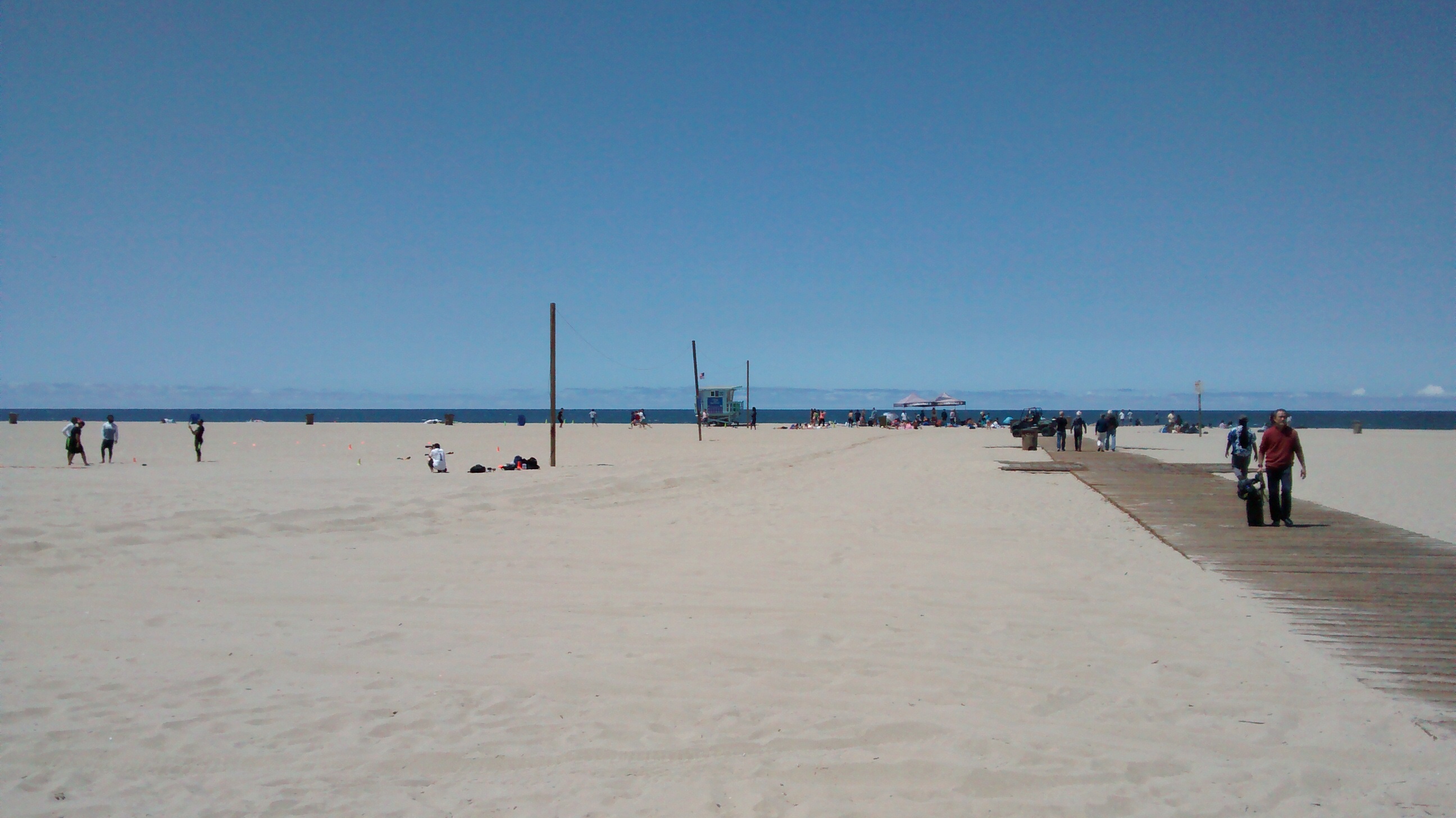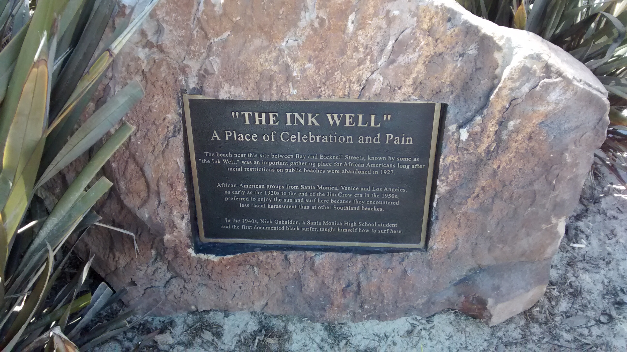 The flat, dreamy expanse of sand that typifies the two beaches. But this particular spot of Santa Monica beach has a sadder side…