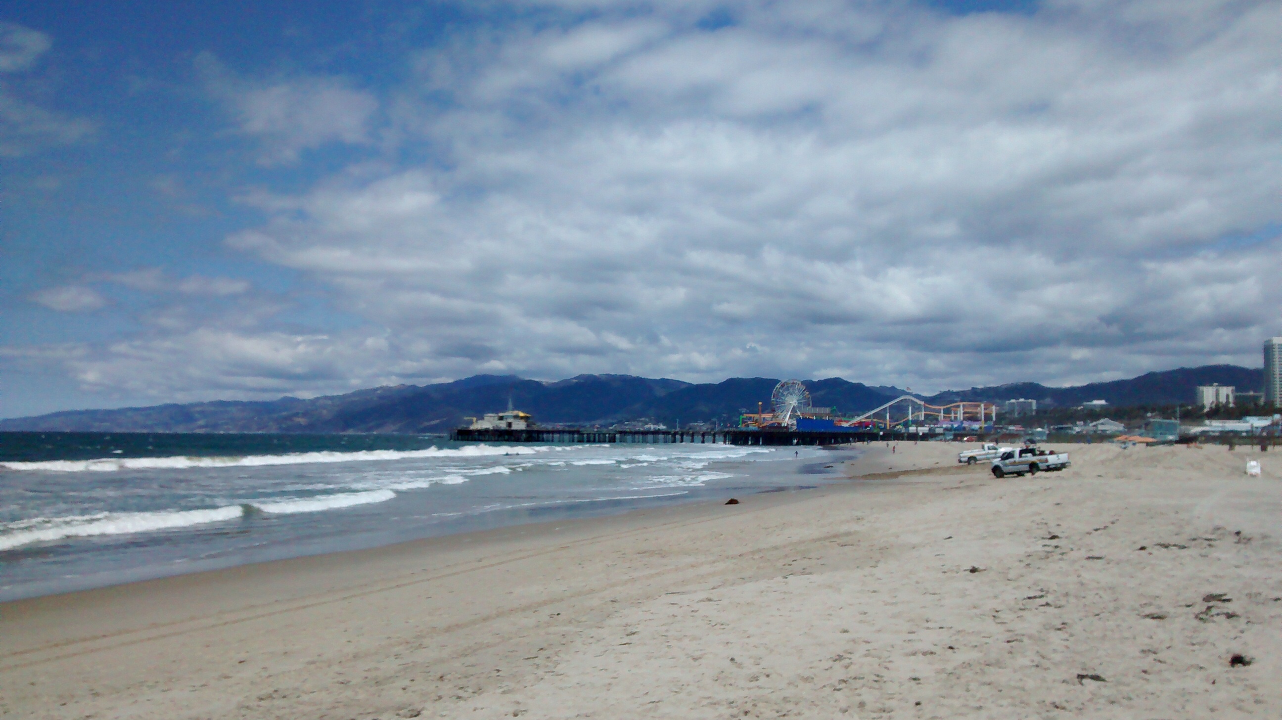 Looking back to Santa Monica Pier and, in the far distance, Malibu beach and its super-duper-stars.
