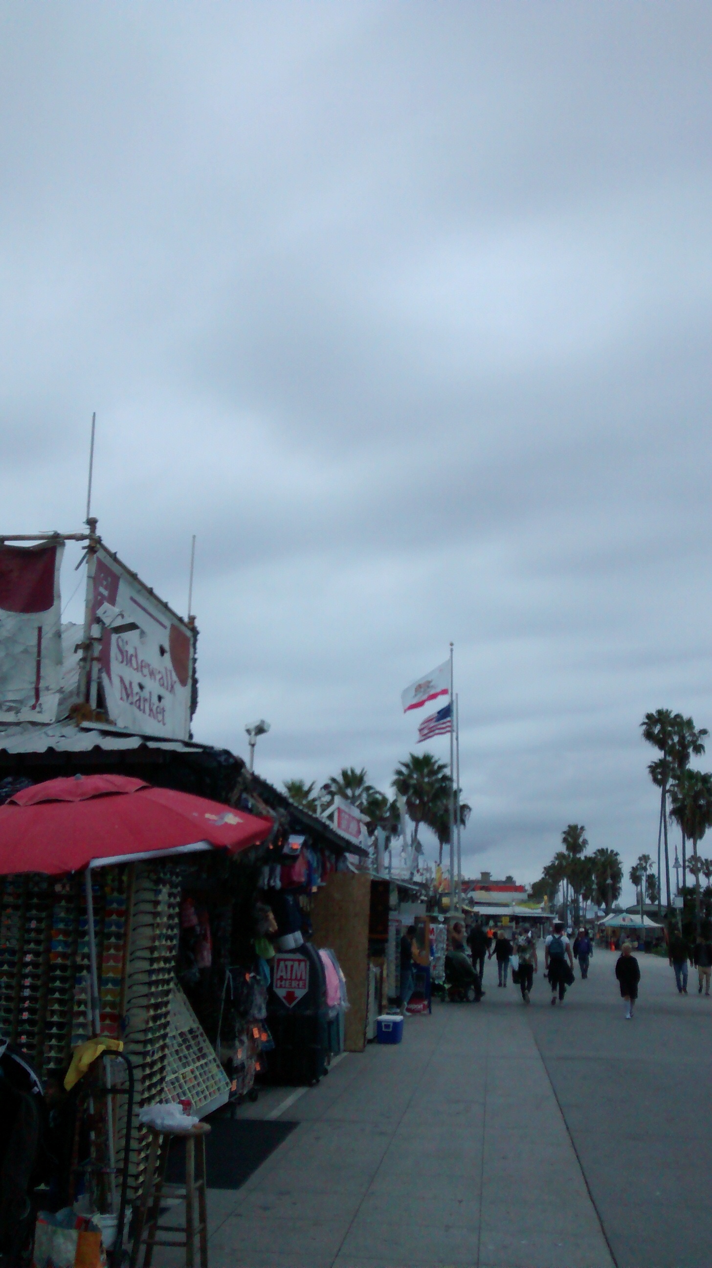 Next door to Santa Monica beach is Venice Beach, which plays the hippie dropout cousin to Santa Monica’s staid respectable member of society. They share the same vast sandscape, the same lines of waving palm trees, and to be honest, the same waves of homeless people. But Venice has the street performers on its boardwalk, the Rasta-themed street stalls facing the colourful souvenir and T-shirt stores, and it has the blocks of meat working out at notorious Muscle Beach.