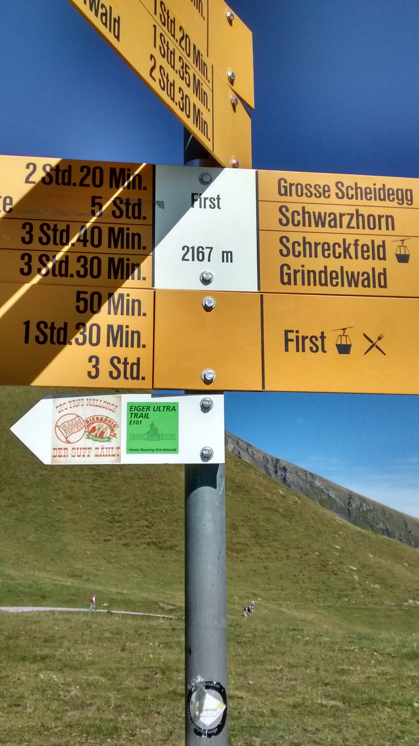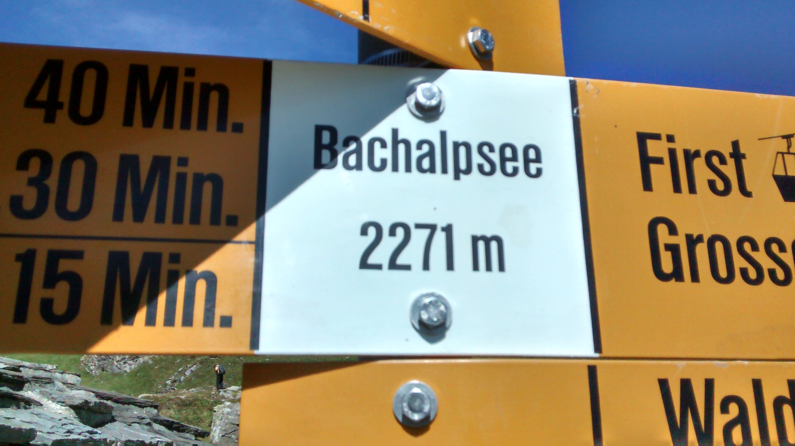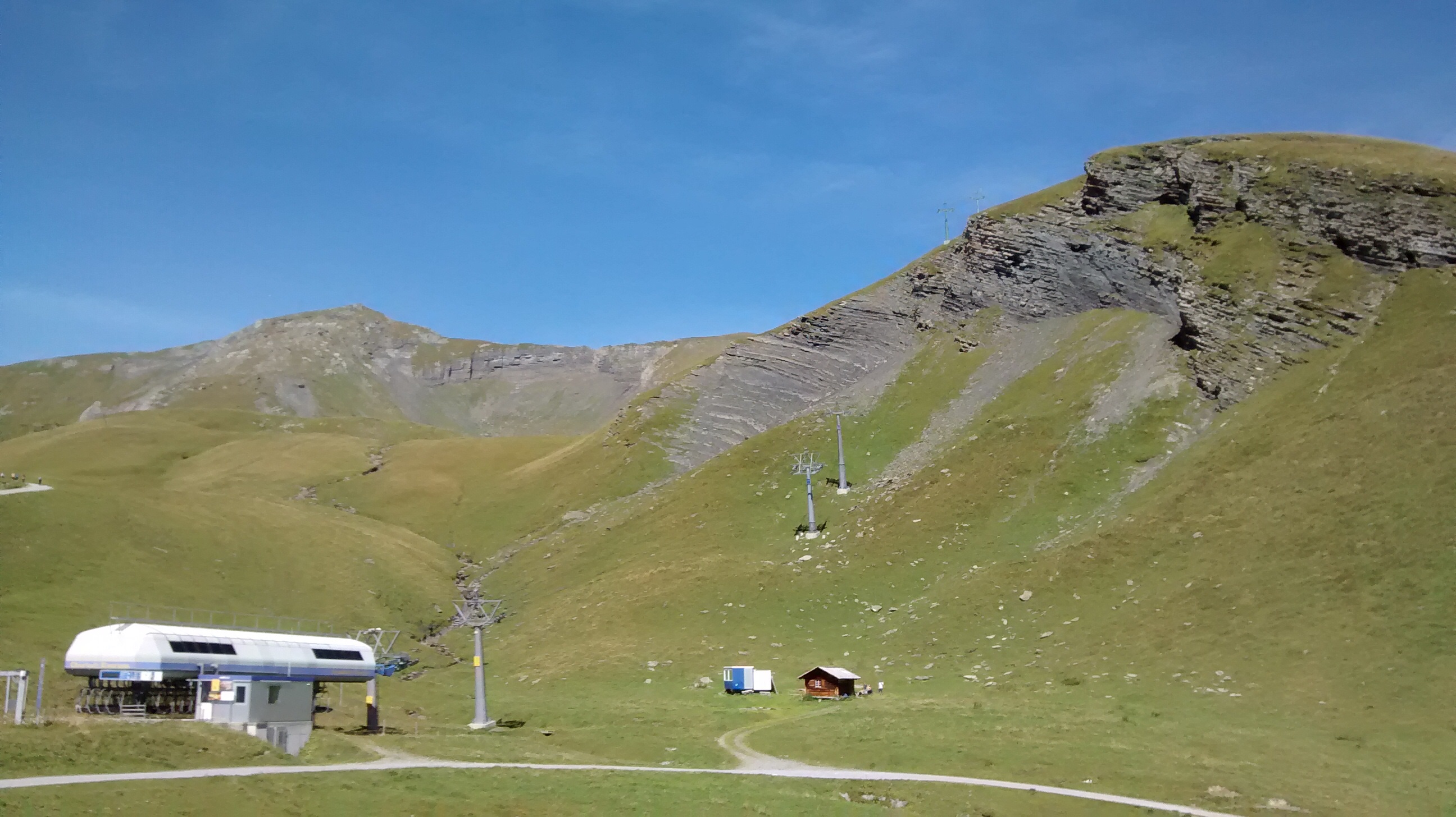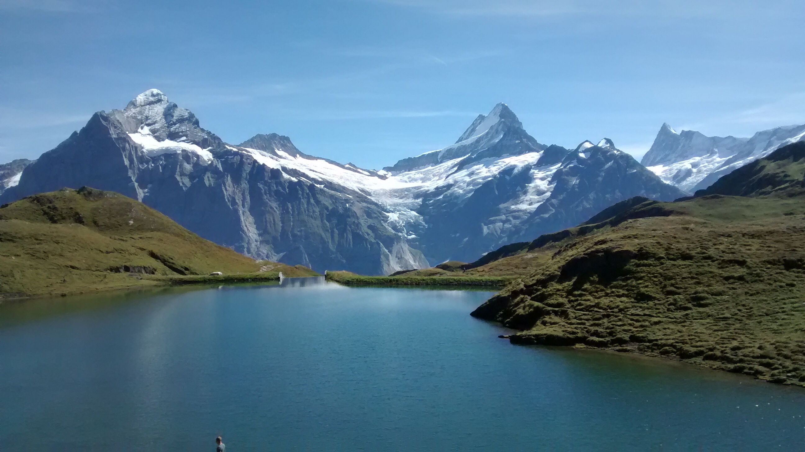 At the top is the outdoor activity area of Grindelwald-First, from where you can ride bikes, trip-wire, do scary cliff walks – or just hike. Which is what we’re going to do. An easyish walk up to Bachalpsee, 50 mins, a 300-foot climb in total, but well worth it.