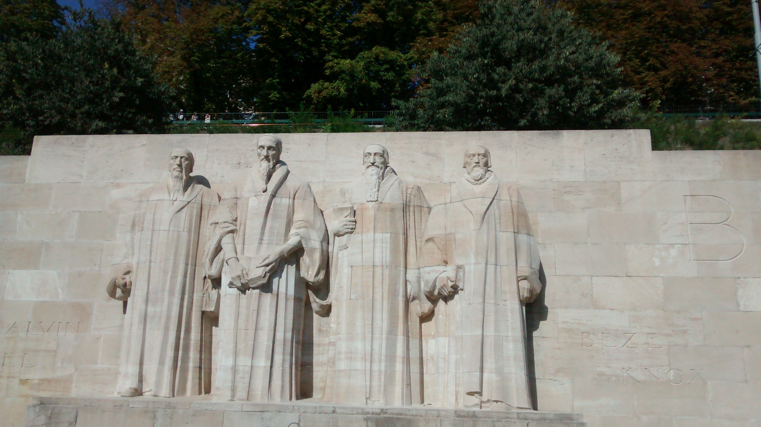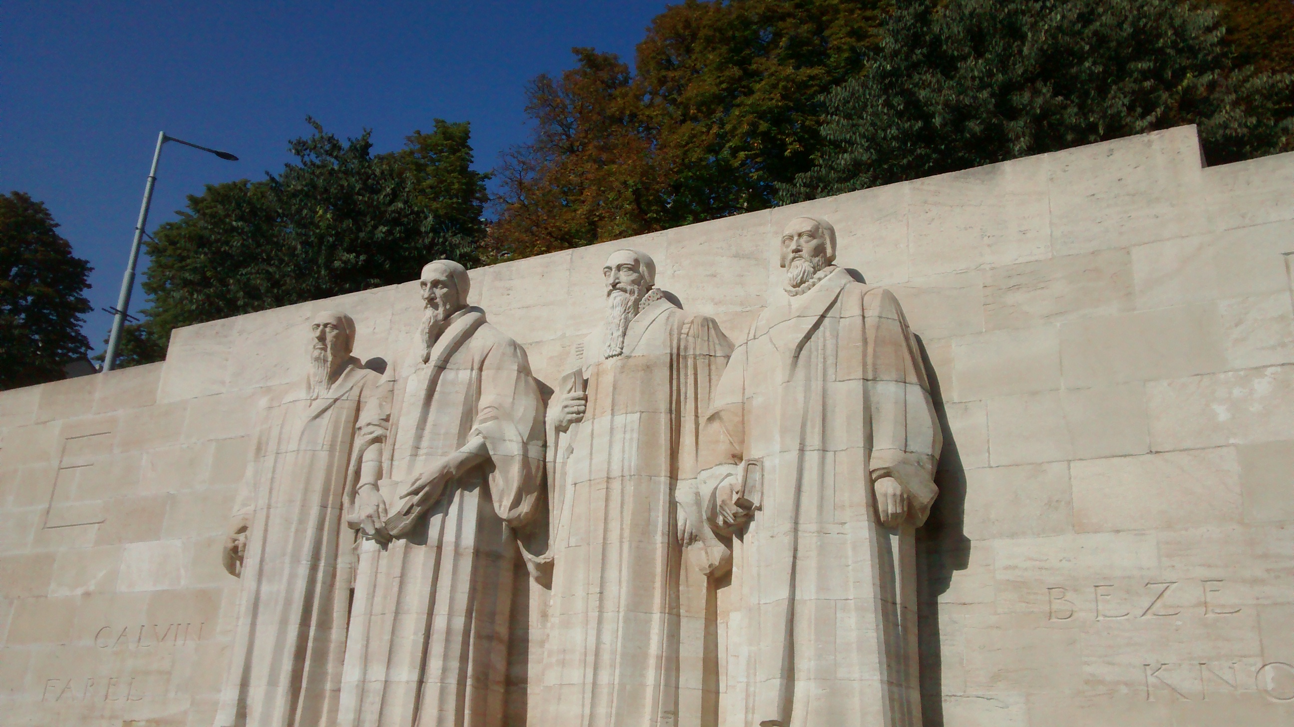 The leading figure in much of this was Jean Calvin, founder of the Republic of Geneva. In 1909, 400 years after his birth, the authorities built a Reformation Wall, as grandiose a celebration of Reformation landmarks and heroes as the Calvinist mindset will allow. It sits in the Parc des Bastions, against the fortifications of the Old Town, and in the grounds of the University that Calvin founded.