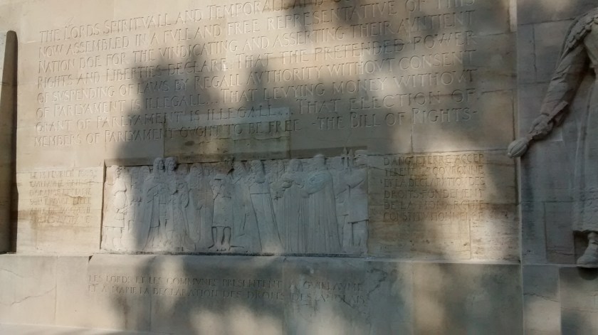 Other events in the history of Protestant liberty commemorated include our own Bill of Rights, shown – just about – here…