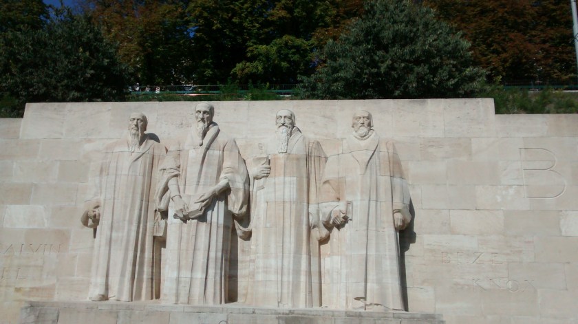 From left to right, William Farel, Calvin, Theodore Beza, and John Knox.