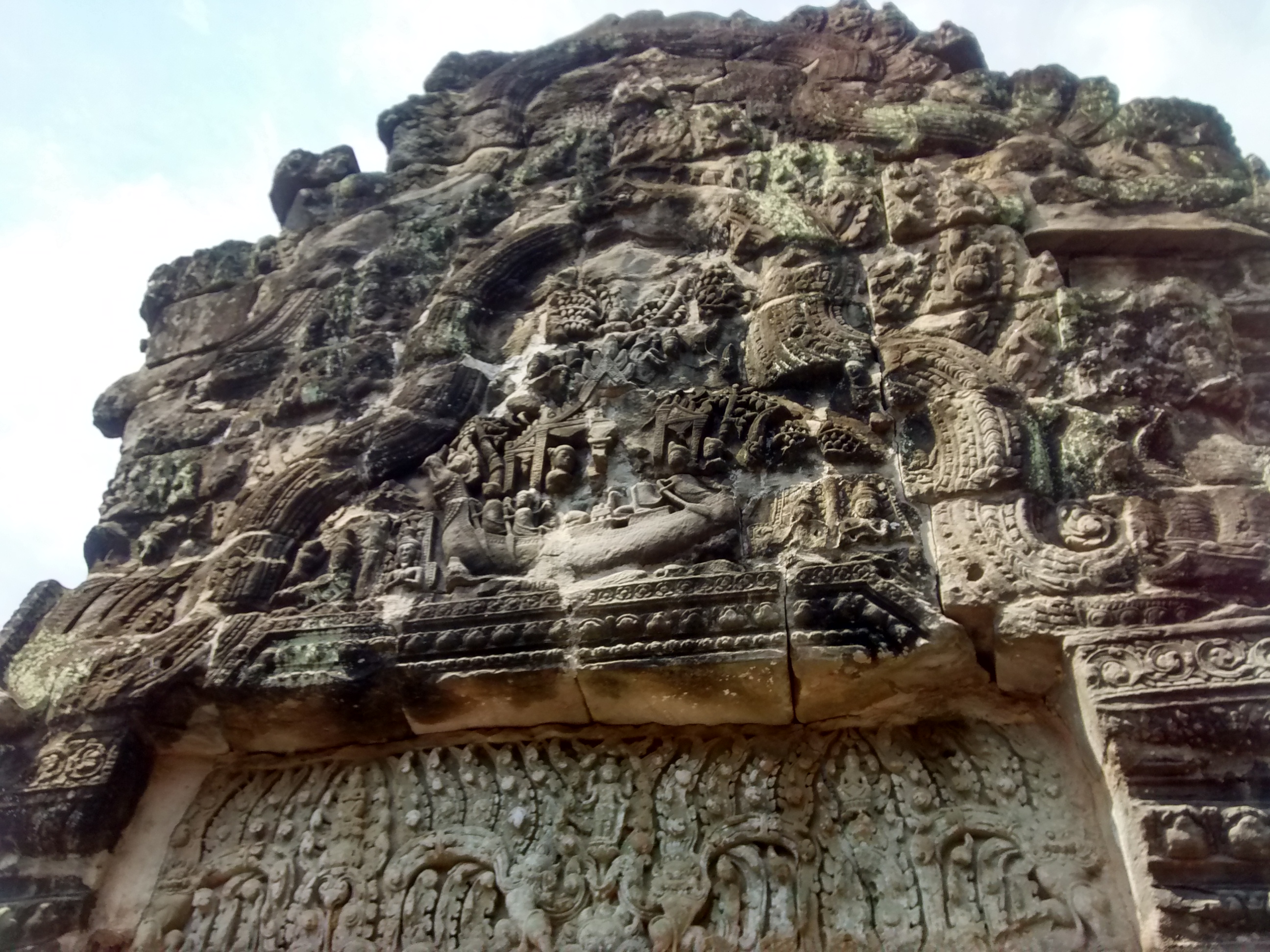 There were originally figurines of the Buddha in those recesses above the dancers. But future rulers would revert Angkor from Jayavarman VII’s Buddhism back to Hinduism, and Jayavarman VIII, in particular, wasn’t ‘aving any Buddha. Out they came.