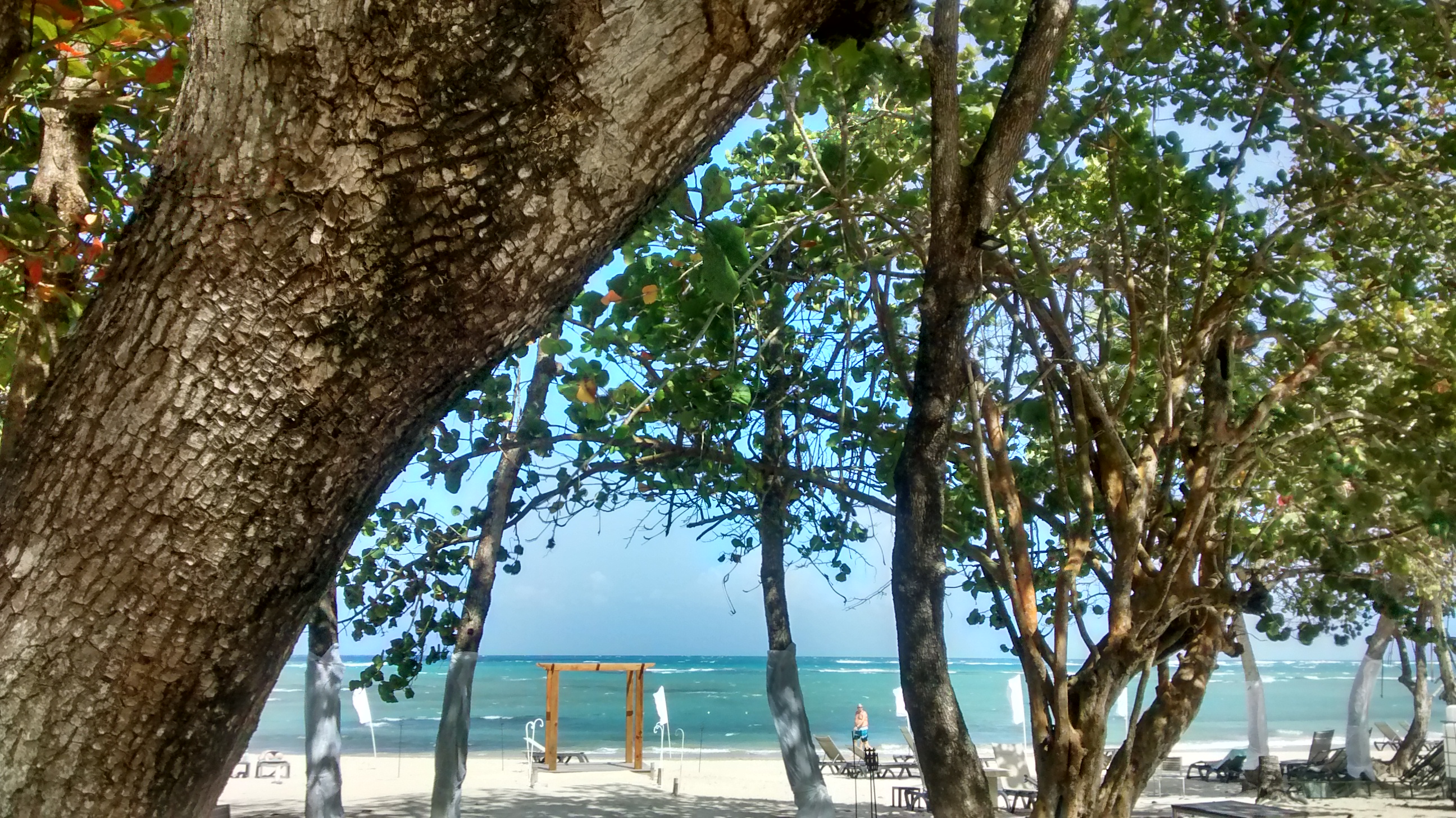 …the sun-kissed palm-fringed beach walk along the deep-blue Caribbean Sea…