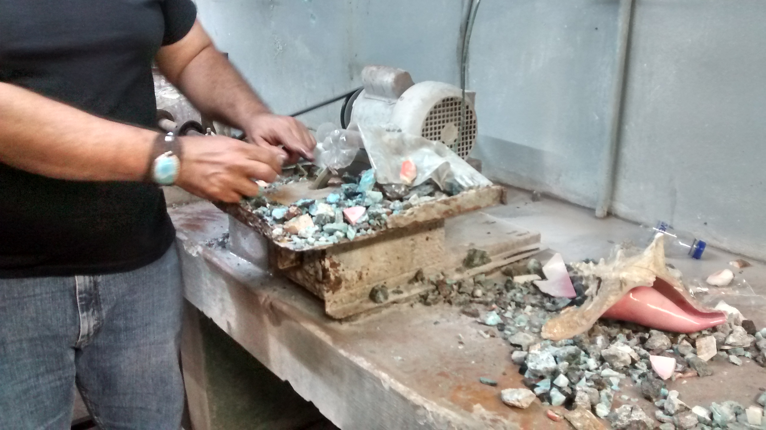 Here you see our store guide cutting chips of the bare stone. It doesn’t look all that much, until you see what’s on his wrist.