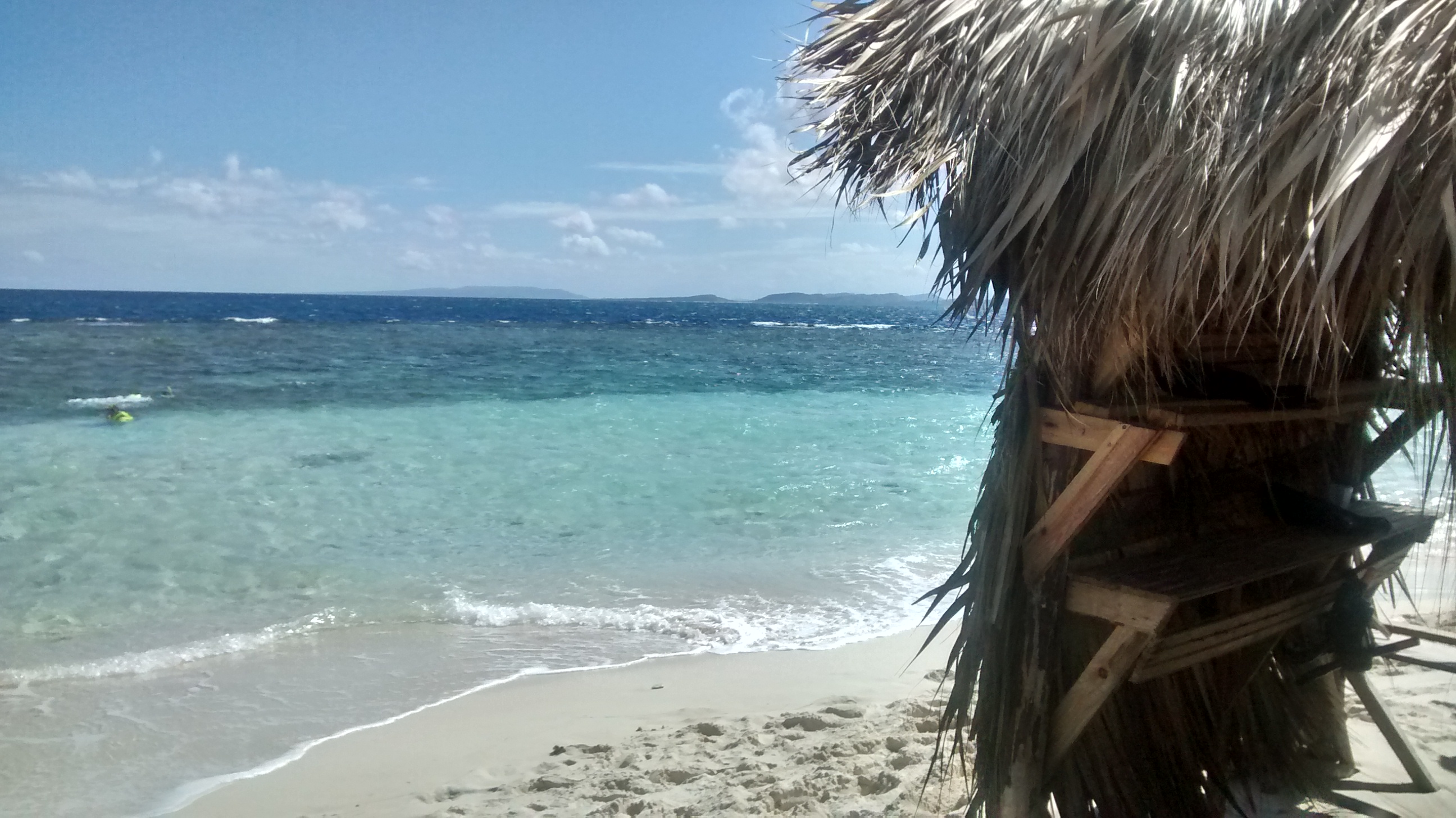 The sandy cay is uninhabited, only consisting of a dozen shacks for the tour parties that come out here. Like most cays, it rises very gently out of the water and sometimes disappears beneath the waves. On those occasions it is not open for business.The low sea shelf means you can stand up in the ocean a good few metres away from the sandbank, making for easy snorkelling.