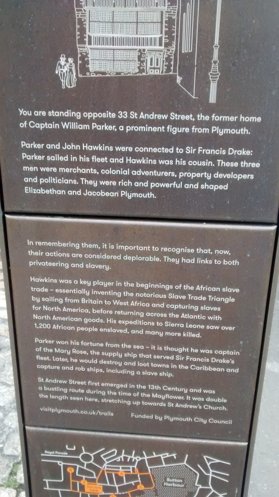 Never mind. A number of other important colonising voyages started out from Plymouth, and they each have their own commemorative plaque on the wall and their own stone in the ground.