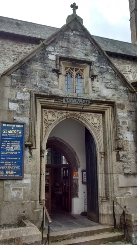 St Andrew’s was actually bombed. As an act of defiance a local headmistress nailed a wooden sign over the door. “I will rise again”. The old sign has been replaced, but the Church did rise again, and so did Plymouth.