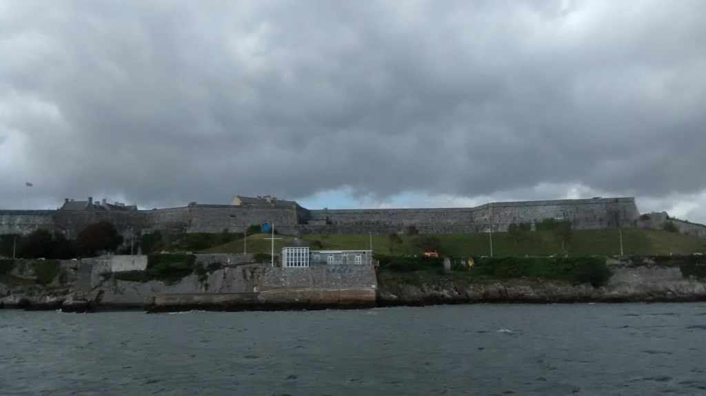 Coming back round again, we pass the Royal Citadel. An important naval asset such as Devonport (where the dockyard actually is) itself needs defending. The 17th-century Citadel was – and still is – a redoubtable fort with impressive seaward defences. You can see one of the old guns on the wall to the right. To this day an Army detachment is still based here.