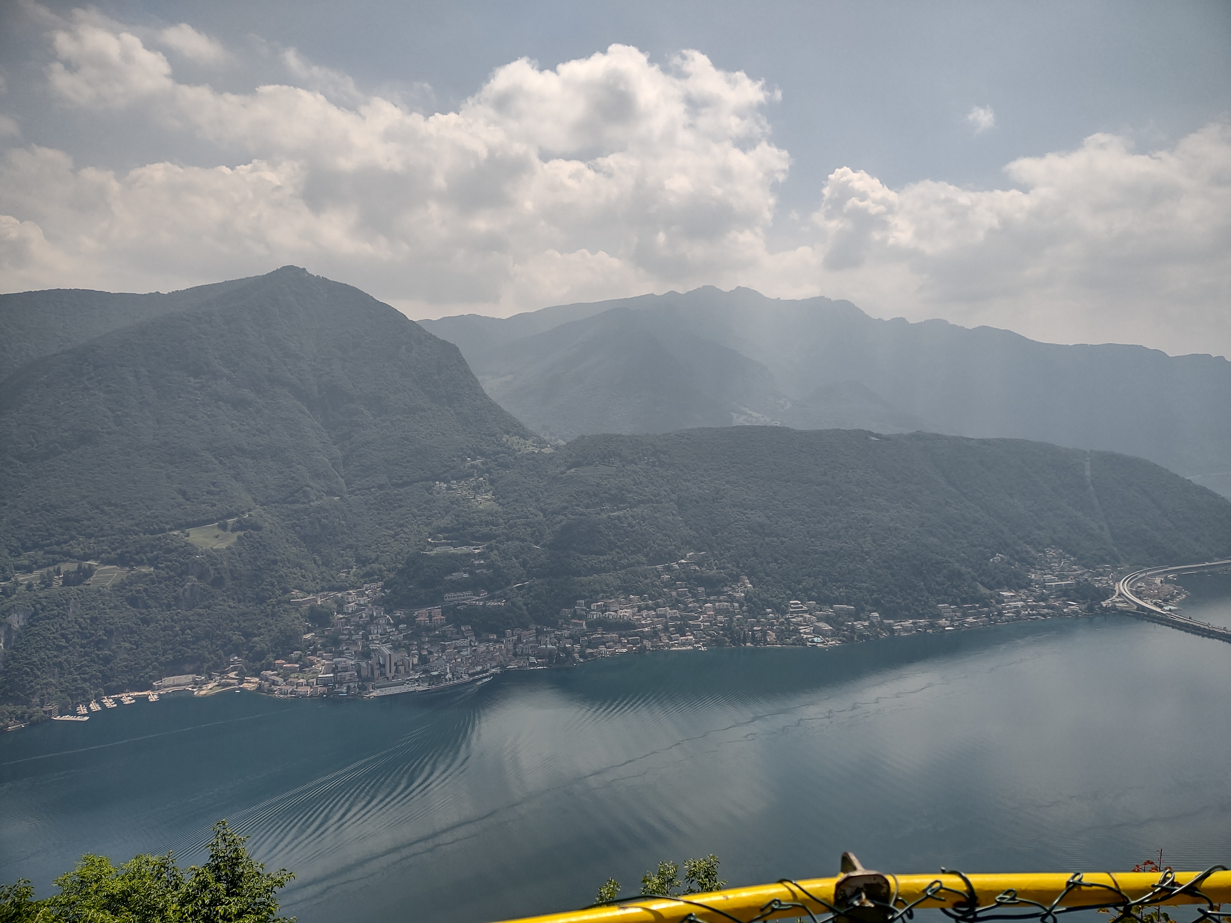 Across Lake Lugano you can see the Italian town of Campione d’Italia. Then you see the hills of Switzerland that completely surround it – Campione d’Italia being an Italian exclave. And looking beyond those hills and woods you see the hills and woods of proper Italy that surround them.