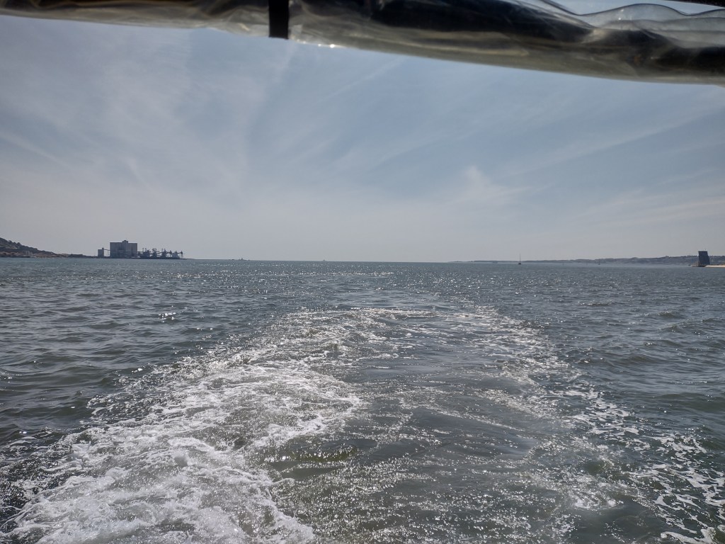 And so the mighty Tagus river, the greatest in Iberia, slips slowly out of the great lagoons of Lisbon, and out through the breakwater and into the wide Atlantic itself.