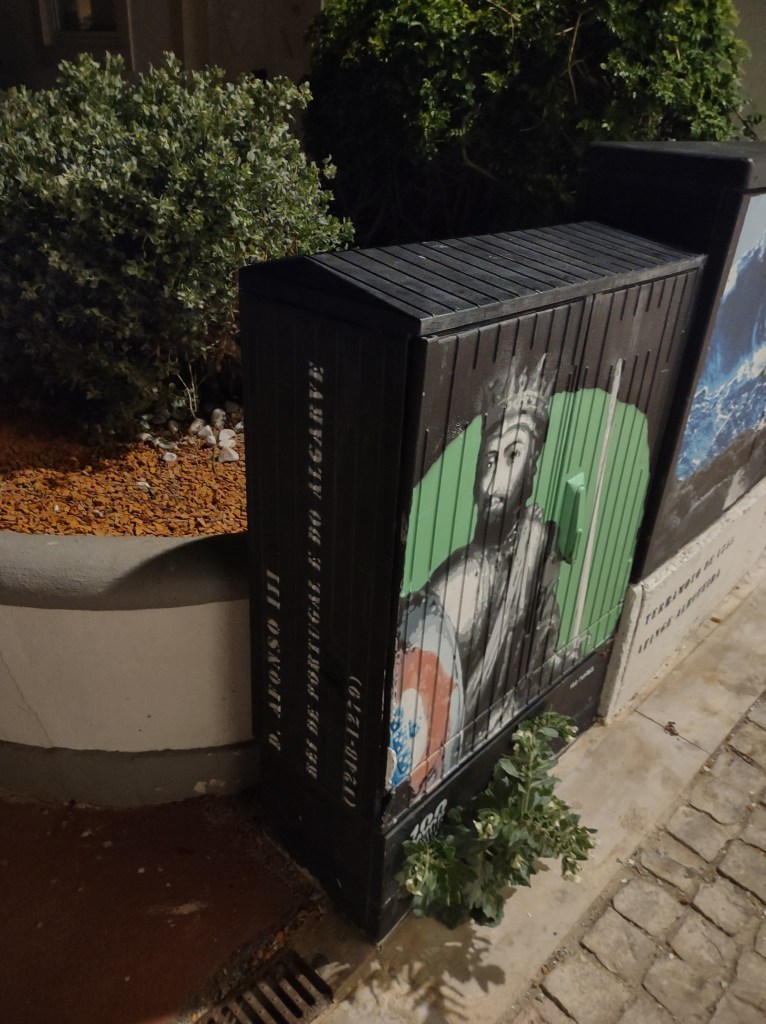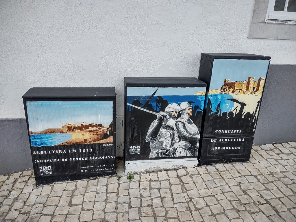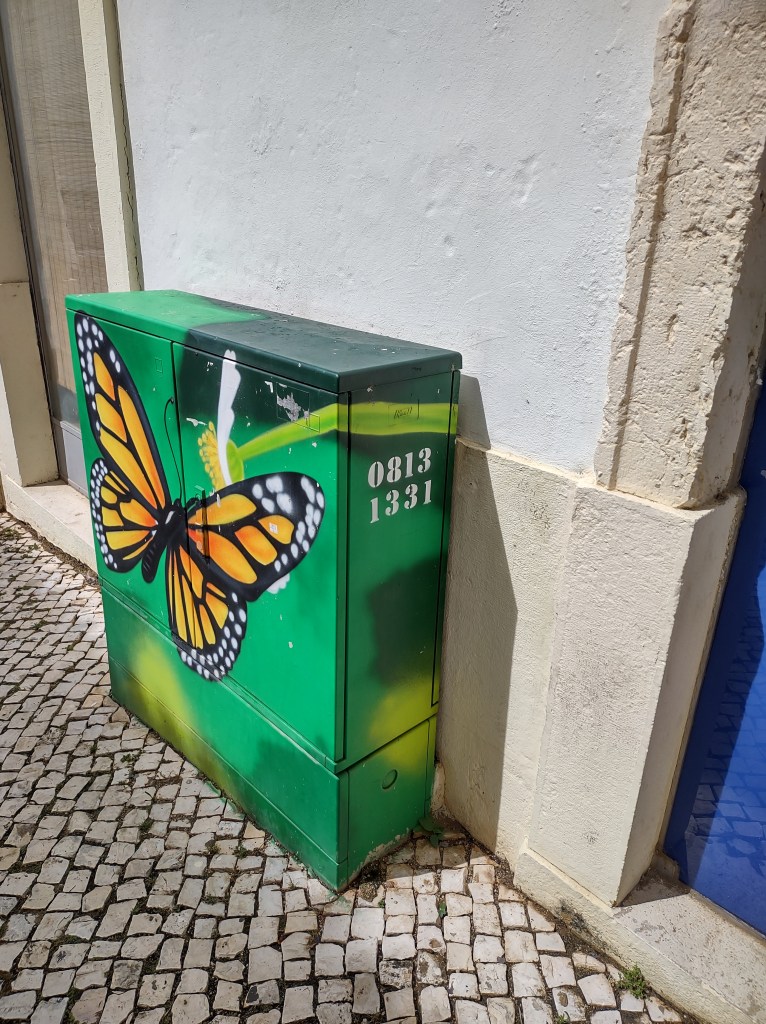 In parts of the Algarve there appears to be a thing for painting up electrical and telecoms junction boxes with pretty artwork. These two are from the town of Silves.