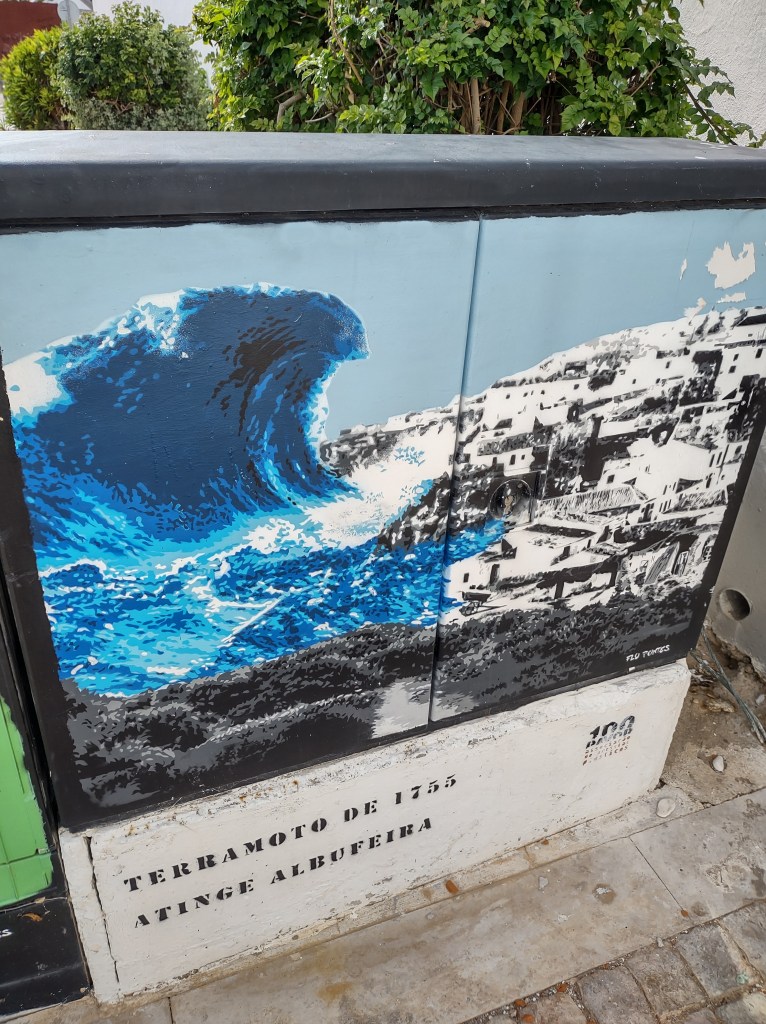 Albufeira, no stranger to natural disasters, was virtually destroyed by the tsunami that followed the 1755 earthquake. The artwork gives a good sense of the size of the wave. (I think).