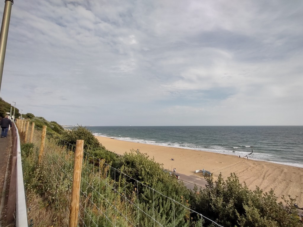 Unfortunately, bad planning regarding where to join the bus in Bournemouth meant that I found myself at the back on the lower deck, not the best place to take snaps of the deep chines of Bournemouth, the harbour at Sandbanks, or the chain ferry that takes the bus over to Studland and the dramatic scrubland and rolling dales of Purbeck. (If you’re coming to Bournemouth, join the bus at the train station. It’ll guarantee you a seat on the open top deck. Make sure it’s not raining).